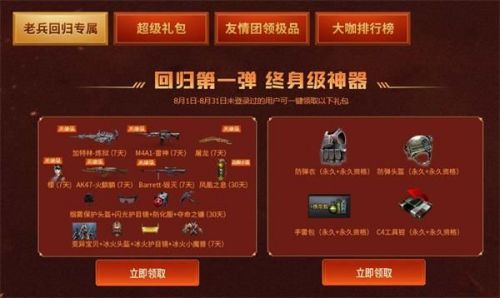cf9月超级神器活动在哪参加?cf9月也会开启新的活动,这次的活动是大家比较熟悉的超级神器活动,这次的活动也比较简单,召回战友即可领取永久神器。那么具体的活动玩法和奖励是什么呢?这里就带来了具体内容,希望大家喜欢。 CF9月友情积分活动 活动时间:9月1日-9月30日 活动网址:https://cf.qq.com/cp/a20210820lr/index.shtml 移动端活动网址:https://cf.qq.com/cp/a20210820lr/h5/h5.shtml 获得CF友情积分,领取道具 CFVIP(30天) ANACONDA-黑金神龙(永久) 马哲-十二周年庆纪念名片(永久) 军用手斧-卡通(永久) 王者之石 超级矮个子-绝技(永久) EVOⅢ-黑金传说(永久) 手斧- SS(永久) 等等…… 另有永久巴雷特-零-水下丽影、黑鲨等等,限量的,就不用惦记了 KOL邀请码续约奖励 |