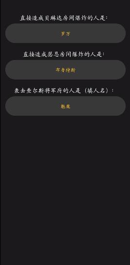 剑与远征失控之船剧本答案是什么?百变大侦探发布全新联动剧本剑与远征失控之船,该剧本一共有三个问题需要玩家作出解答,以下是本次剧本的正确答案与案情解析。 剑与远征失控之船剧本杀凶手: 直接造成贝琳达房间爆炸的人:罗万 直接造成瑟恩房间爆炸的人:布鲁特斯 袭击尔斯将军政府的人是:魅魔 百变大侦探剑与远征失控之船剧情分析:首先、我们要搞清楚自己处在一个什么样的环境,在这个魔法世界里你将面对的是一群精英人士,他们轻信谣言,将人与运行融合在一起,产生了全新的物种“亚人”,为了追求永生而存在。 其实,大家了解了故事的背景之后还要了解剧情中的每个环境及他们之间的关联,在这场战争中魔法与文明的战争看起来会无休不止。 最后人类进入了末法时代,这场战争其实就是一场骗局,很多人深受其苦,我们要想法办将幕后黑手找出来..... 剑与远征失控之船剧本杀概述:剧本题材:奇幻 剧本人数:5人 剧本难度:简单 作者:竹青 剑与远征失控之船剧本杀人物简介: 耀光帝国小公主:女,13岁,身高130cm。“别问我做事的意义,就是没有!怎么了!” 绿裔联盟的小浣熊:男,12岁,身高120cm。“没有什么比吃东西更快乐了!” 耀光帝国首富之子:男,14岁,身高155cm。“做生意就是要精打细算,一个子儿也不能少。” 绿裔联盟的帅哥剑士:男,25岁,身高210cm(含角)。“来切磋剑术么?” 蛮血部族的战神:男,35岁,身高201cm。“身为战神,确保万无一失的方法只有一种,那就是让自己无懈可击。” 剑与远征失控之船剧本杀故事背景:这是一个魔法世界,绚丽多彩,然而平静被一群精英人员打破,他们轻信谣言,将人与动物融合,形成"亚人",用以追求永生。 一日,亚人奋起反抗,组建蛮血部族与人类发动战争。一部分不愿参战的亚人去了薄暮丛林隐居,建立了绿裔联盟,战火绵延。 魔法文明在无休止的战争中没落,人类进入了末法时代。 直到这时,人们才发现,战争的爆发来源于一场"永生"的骗局,它如同绞肉机一般带走了数不清的生命。 人们唾弃欺骗者,却不想恶魔肆虐,更大的危机已经悄然来临。 这天你们因不同的目的出发,登上了一艘开往大陆另一面的船只,没想到遭遇爆炸、受伤,甚至…… |