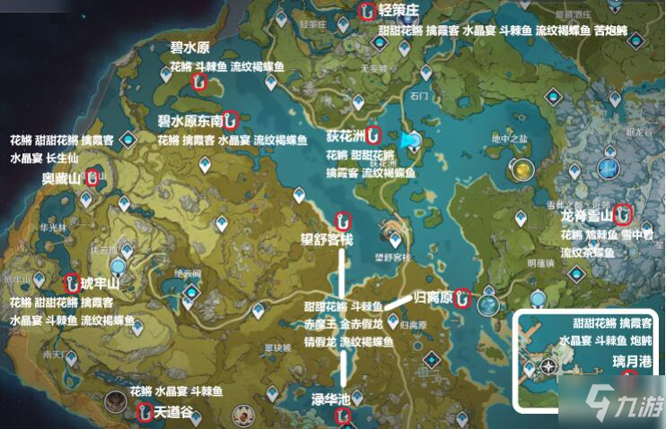 渌华池、归离原、望舒客栈钓鱼点。