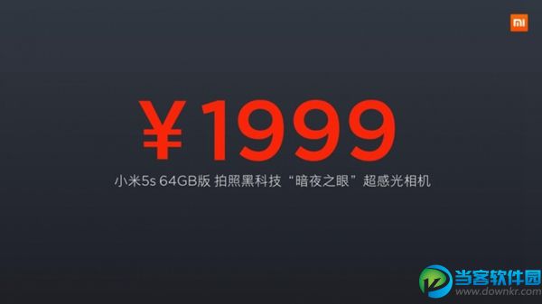 小米5s标准版(3GB+64GB,2.4GHz骁龙821)售价1999元,金属机身;