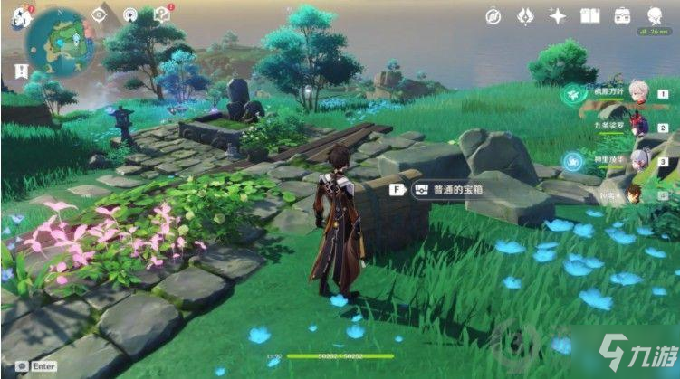 触碰完鸟居的2个雷灵后再回头看,废弃神社的顶上又会出现一个雷灵,也就是第4个雷灵,触碰后开启第4个灯,宝箱就解锁了。