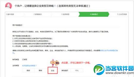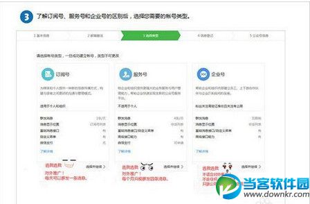 四.接下选择所需要的公众号类型,订阅号、服务号、企业号是不同的,订阅只适合于个人使用,功能有限;服务号适合于企业对外产品宣传、信息推送,客户针对性很强;企业号针对员工管理,上下渠道管理等等。要根据自己的实际情况进行选择,一旦确定将无法修改。