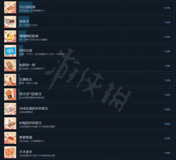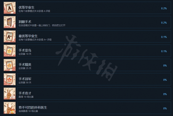 外科模拟2成就有什么?游戏于今日正式在steam上发售,支持steam成就奖杯系统,很多玩家不清楚成就有什么,下面小编就为大家带来外科模拟2全成就奖杯一览,不清楚的玩家快来看看吧。