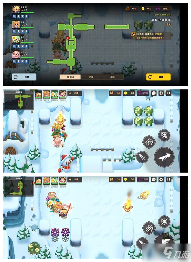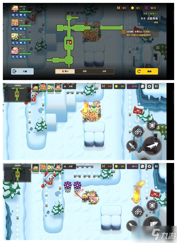 坎公骑冠剑游戏中的8-6法庭背后是噩梦难度关卡的最后一关,这一关过去了之后,这个章节就全部完成了,既然是最后一关,那么自然是不太好过的,不清楚这一关里面的黄碎片怎么全收集的玩家不妨来看看小编为大家带来的这一期攻略吧。 《坎公骑冠剑》8-6法庭背后噩梦难度关卡攻略分享 8-6 法庭背后 1:8-6关卡小地图 2:黄碎片位置获取方法(共计1个) (1)先来图示位置洞口进去(这里入口被隐藏了,看小地图能看出来) 进入洞口的第一个房间后直接往下走,会有剧情,有NPC和你对话(两个都选红色选项) 然后上面的入口就会打开,一直往上走经过一个需要解谜的房间会有剧情,看完剧情打完BOSS再往上走的房间直接获取 3:隐藏紫币 (1)先来图示位置搬火盆 把火盆搬到图示位置,对着老鼠洞口扔,会触发剧情,看完剧情下面被两个NPC挡住的紫币就可以拿了 (2)搬着火盆往雪堆扔,里面有两个 做到这里之后,这一大章节就全部的完成了,后面还会开放新的章节关卡,小编也会第一时间的为大家带来最详细的攻略,还请多多关注吧。 |