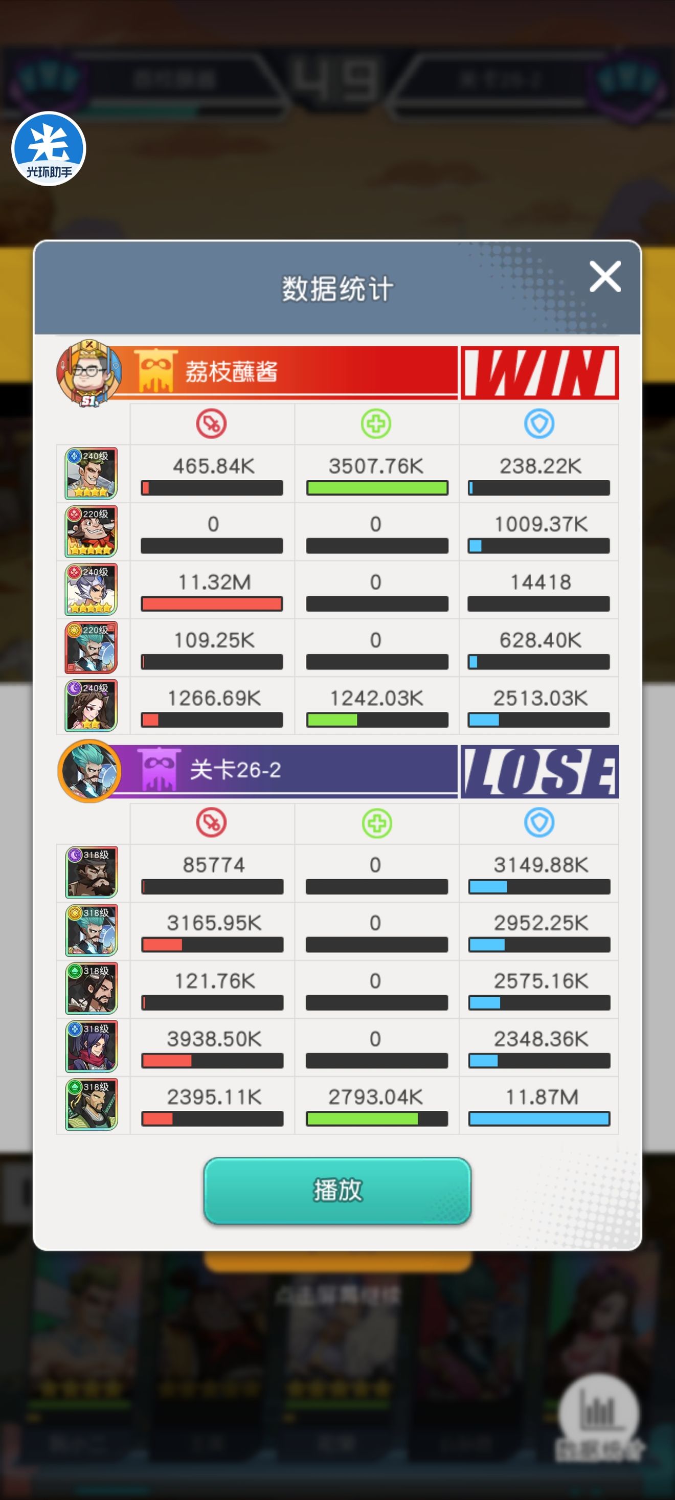 以下就是通关阵容了,要是不知道的话就采用这个阵容通关吧!