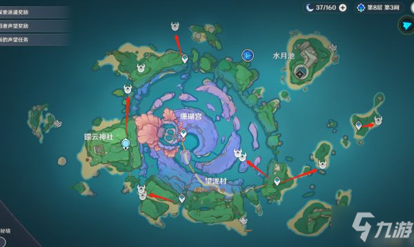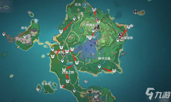 《原神》2.1版本新增加了角色雷电将军,不少玩家想要了解她的突破材料该如何获取,下面请看“七月的休”带来的《原神》雷电将军突破材料获取指南,希望能够帮助大家。 天光系列:秘境-堇色之庭(周三/周六/周日) 雷霆数珠:雷音权现boss(40体/次) 熔毁之刻:周boss女士 雷音权现boss要过世界任务「清籁逐雷记·其四」才会出现 女士周boss要过新的魔神任务(剧情) 专武素材(鱼叉后面补上,其它的4星武器大家应该都准备了素材了) 天云草实 共168颗,48H刷新,单株2颗 建议完成世界任务「清籁逐雷记」再去【天云峠】采集,不然被污染失血过多而挂掉。 1号线(越石村,共6颗) 2号线(越石村和平海砦之间,共6颗) 3号线(平海砦之间,共6颗) 4号线(天云峠内线,共82颗) 5号线(天云峠外线,共68颗) 刀镡 新增【清籁岛】【海祗岛】,野伏众、海乱鬼共234只。 |