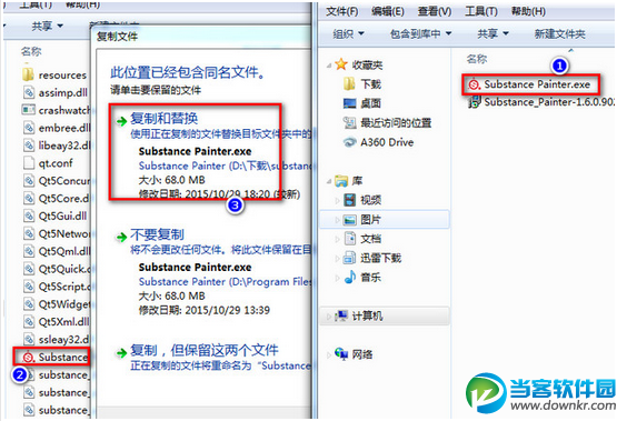 5、将解压文件中的“Substance Painter.exe”破解程序复制到安装目录下替换(默认的目录为:“C:\Program Files\Allegorithmic\Substance Painter”)。
