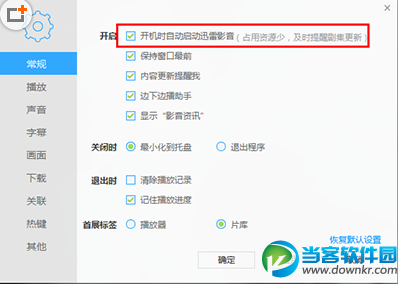 打开设置面板-常规设置,选择是否开机启动迅雷影音。