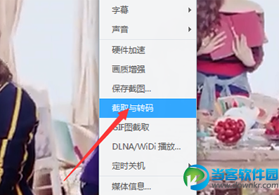 其次,在屏幕中右击右键,在菜单中点击“截取与转码”;