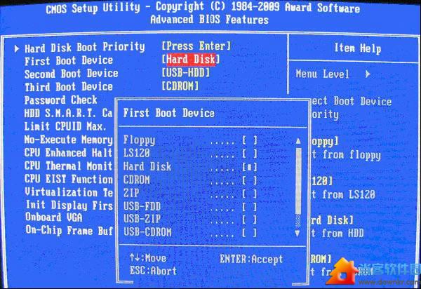 图1 上图1:开机时按住Del键进入到该电脑的BIOS设置界面,选择高级BIOS设置Advanced BIOS Features。 图2 上图2:在进入高级BIOS设置(Advanced BIOS Features)界面后,首先要选择硬盘启动优先级:Hard Disk Boot Priority。 图3 上图3:在进入到硬盘启动优先级(Hard Disk Boot Priority)界面后,需使用小键盘上的加减符号(+、-)来选择与移动设备,要将U盘选择在最上面。然后,按住ESC键退出,这时会回到图2的设置界面。 图4 上图4:完成上一步后,再选择第一启动设备(First Boot Device):该版本的BIOS这里没有U盘的“USB-HDD”、“USB-ZIP”同类的选项,选择移动设备“Removable”也不能正常启动。但是,选择“Hard Disk”就可以启动电脑。 2、旧的Award BIOS(2009年电脑主板设置方法): 图1-1 上图1-1:开机按住Del键进入到该电脑的BIOS设置界面,然后选择高级BIOS设置:Advanced BIOS Features。 图2-1 上图2-1:在高级BIOS设置(Advanced BIOS Features)的界面,首先要选择硬盘启动优先级:Hard Disk Boot Priority 。 图3-1 上图3-1:进入到硬盘启动优先级(Hard Disk Boot Priority)界面后。需要使用小键盘上的加减符号(+、-)来选择与移动设备,要将U盘选择在最上面。完成前面的步骤后按住ESC键退出,便会回到图2-1的设置界面。 图4-1 上图4-1:在第一启动设备(First Boot Device)的界面里,有U盘的USB-ZIP、USB-HDD之类的相关选项,我们可以选择“Hard Disk”,也可以选择“USB-HDD”之类的选项,来启动该电脑。 图1-2 上图1-2 选择Boot菜单界面设置中的U盘启动项 图2-2 上图2-2 :启动优先级设备选择(Boot Device Priority)在第一启动设备(1st Boot Device)里选择U盘。 如果在图1-2的硬盘驱动器“Hard Disk Drives”里面没有将U盘作为第一启动设备,那么,在这里就不会存在和显示U盘,如上图2-2所示。但是,我们可以选择移动设备“Removable Dev.”来作为第一启动设备; 图3-2 上图3-2 进入硬盘驱动器“Hard Disk Drives”界面,需要选择U盘作为第一启动设备“1st Drive”。如果之前在“Hard Disk Drives”里已经选择U盘为第一启动设备,如图3-2所示,那么在这个界面里就会显示有U盘,我们就可以选择U盘作为第一启动设备,如图4-2所示。 图4-2 上图4-2 :当我们之前就在图3的硬盘驱动器“Hard Disk Drives”中选择U盘作为第一启动设备“1st Drive”后,要启动优先级设备选择(Boot Device Priority),这时才会显示有U盘,然后我们就可以优先选择U盘作为第一启动设备(1st Boot Device)。 |