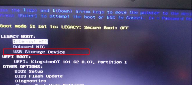 6、重启过程中按F12,进入开机启动项选择页面,选择USB storage device回车,即可进入U盘启动盘。