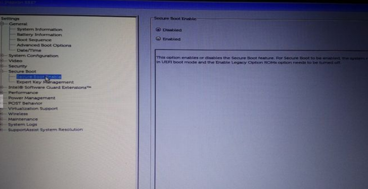 3、Secure Boot下,点击Secure Boot Enable,选择Enabled;