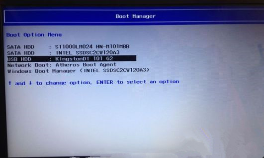 2、调出启动管理菜单,如果有两个U盘想,那么EFI USB Device表示uefi模式,USB HDD表示legacy模式,根据需要选择U盘启动项,按回车进入U盘启动。