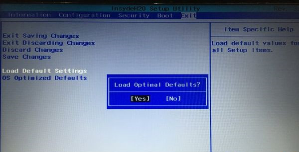3、按↑方向键选择Load Default Settings回车,选择Yes回车,加载Legacy默认配置,默认会禁用Secure Boot,如果不确定,则转到Security下,查看Secure Boot是否是Disabled,如果不是,就手动改下。
