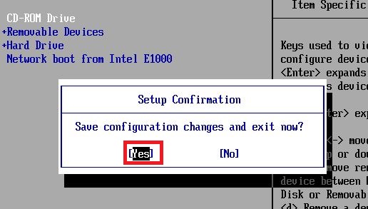7、按“F10”,选择“Yes”,按下“回车键”,计算机将重启,如图4