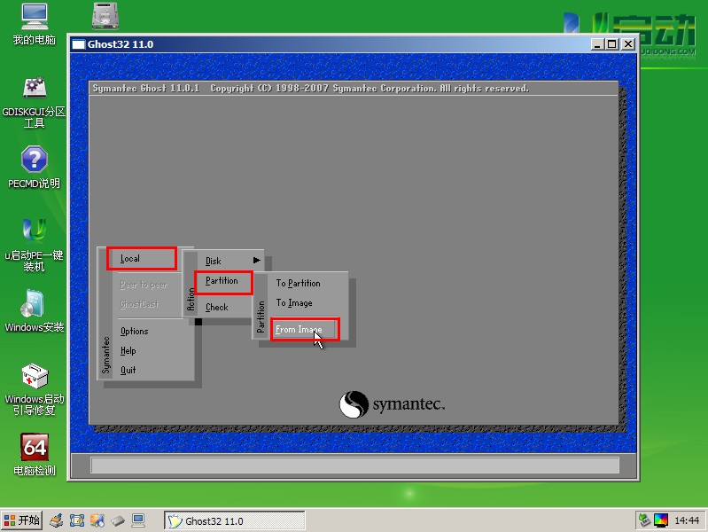 在窗口中依次选择“Local→Partition→From Image”;如下图所示: