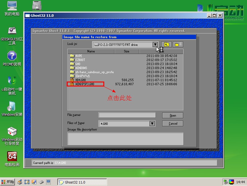 点击您所需要安装的系统(温馨提示:请点击“.GHO”文件哦),如下图所示: