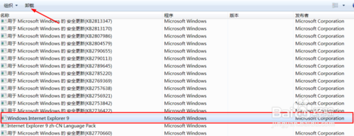 找到IE浏览器版本的相关更新,单击“卸载”,按提示操作即可。