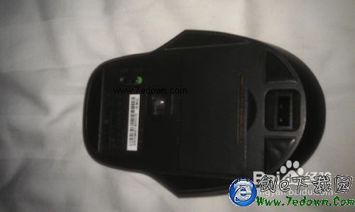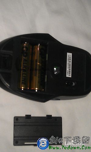 1、确认鼠标底部的电源开关已经拨至“OFF”状态,打开电池盖。