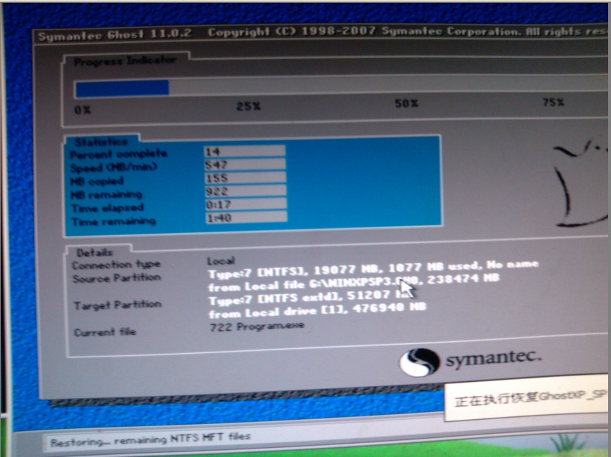 到DiskGenius 进行C盘格式化和指定C盘为主逻辑盘。最后一步,我用光驱启动到PE,还原系统到C盘!