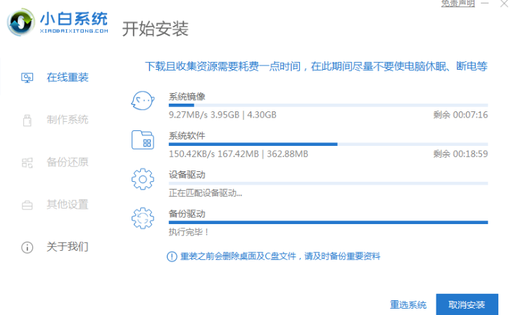 5、进入pe系统后,小白装机工具会自动开始安装windows系统。