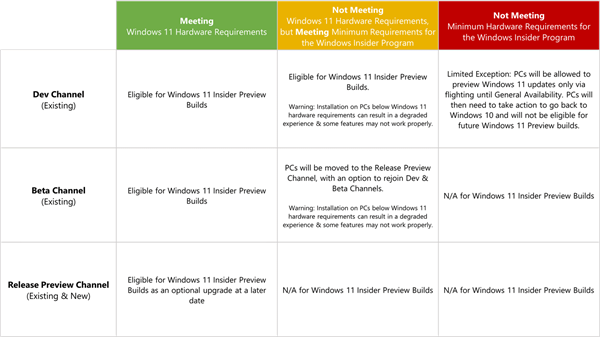 即使不满足最低硬件要求也可以升级Win11?我们使用微软官方推出的Win11升级检测工具来检测自己的电脑是否能够升级Win11,其实如果是因为硬件要求无法升级Win11的话,也可以升级Dev版。 2021 年 6 月 24 日之前所有已经在其 PC 上安装 Dev Channel 版本的用户仍可选择升级 Dev 版 Windows11,只是在未来会有限制。 以下为微软官方给出的测试通道支持政策: 当然,我们还是建议满足完整的硬件要求的 PC 去升级,毕竟体验会更好一些。此外,微软也表示: 由于这些设备不满足新的硬件要求,因此可能存在影响 Windows 11 在这些 PC 上的体验的问题和 bug,这些问题和 bug 可能无法修复。 如果这些 PC 中的任何一台出现问题而需要滚回 Windows 10,可以使用 MCT 工具返回,只是这些 PC 不再允许再次升级到 Windows 11 Insider Preview 版本。它们将被视为新 PC,并且将严格执行上面的最低硬件要求。 一旦 Windows 11 正式到来,这些 PC 可选择退出测试,并且将无法接收之后的 Windows 11 Insider Preview 版本。此外,他们还必须使用微软提供的 ISO 全新安装以回到 Windows 10 预览通道。 此外,微软还将在今年夏天晚些时候发布 Beta 通道的 Windows 11 Insider Preview 版本,Beta 测试中不满足 Win11 硬件要求的 PC 将被移至 Release Preview 频道,其中部分 PC 可自行返回 Beta 通道但风险自负。 对于 6 月 24 日之前没有加入 DEV 通道却又想测试 Win11 的小伙伴,我们这里提供一种方法,不过修改注册表有一定风险,该方法仅供参考,后果自负: 首先,加入 Insider 计划并选择 Release Preview,毕竟你也没有其他选择。 重启,然后打开注册表编辑器。 在左侧导航中找到: HKEY_LOCAL_MACHINESOFTWAREMicrosoftWindowsSelfHostUISelection 将 UIBranch 中的值更改为 Dev。 将 ContentType 中的值更改为 Mainline。 将 Ring 中的文本更改为 External。 然后导航到: HKEY_LOCAL_MACHINESOFTWAREMicrosoftWindowsSelfHostApplicability 将 BranchName 中的值更改为 Dev。 将 ContentType 中的值更改为 Mainline。 将 Ring 中的值更改为 External。 退出注册表编辑器,重启。 OK,若你重启之后发现现在变成了 DEV 通道那么恭喜你,现在只需耐心等待微软准时推送测试版即可;万一操作失败的话则建议放弃。 |