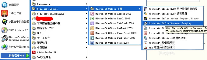 3、 接着打开“Microsoft Office”里面的“Microsoft Office工具”,并且选择“Microsoft Office Document Imaging”。