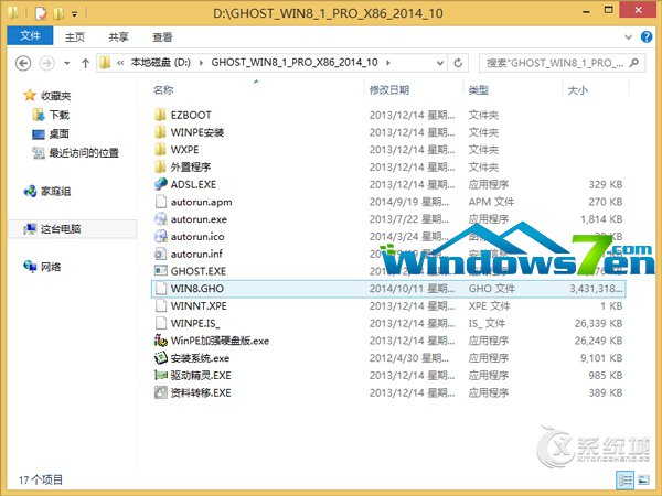 1、首先下载Ghost Win8系统镜像“GHOST_WIN8_1_PRO_X86_2014_10.iso”到本地硬盘上(这里下载在D盘上);