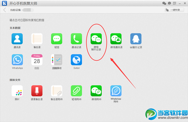 微信聊天记录删除了对方还能看到吗?果粉们对微信的操作自认为是驾轻就熟的,那么大家知道苹果手机微信聊天记录删除了还能看到吗吗?我们删除了微信聊天记录的话,对方没有删除的情况下对方是还可以看到的,但是我们自己如果删除了重要的微信聊天记录该怎么恢复呢?掌握恢复苹果手机微信删除的聊天记录的方法是十分必要的,今天当客小编就给大家演示一个查看苹果手机微信聊天记录的靠谱教程。 苹果手机微信已删除聊天记录的详细查看教程: 第一步:首先我们需要安装开心手机恢复大师这个软件到自己的电脑上,安装完之后就可以直接运行了,然后我们会在主界面上看到三种恢复模式,今天我们可以优先选择第一模式,即“通过设备扫描恢复”; 第二步:将苹果手机连接到电脑上,如果是第一次连接的话,是需要在手机上点击信任此电脑来继续操作的;当手机成功连接到电脑之后,我们就可以直接点击“开始”按钮,继续下一步恢复操作了; 第三步:接下来在数据恢复界面,大家可以看到,除了微信聊天记录,还有通讯录,备忘录,短信等十几种数据的图标,这些常用的功能数据项的数据都是可以恢复的,而现在,我们只需要点击“微信聊天记录”图标即可;