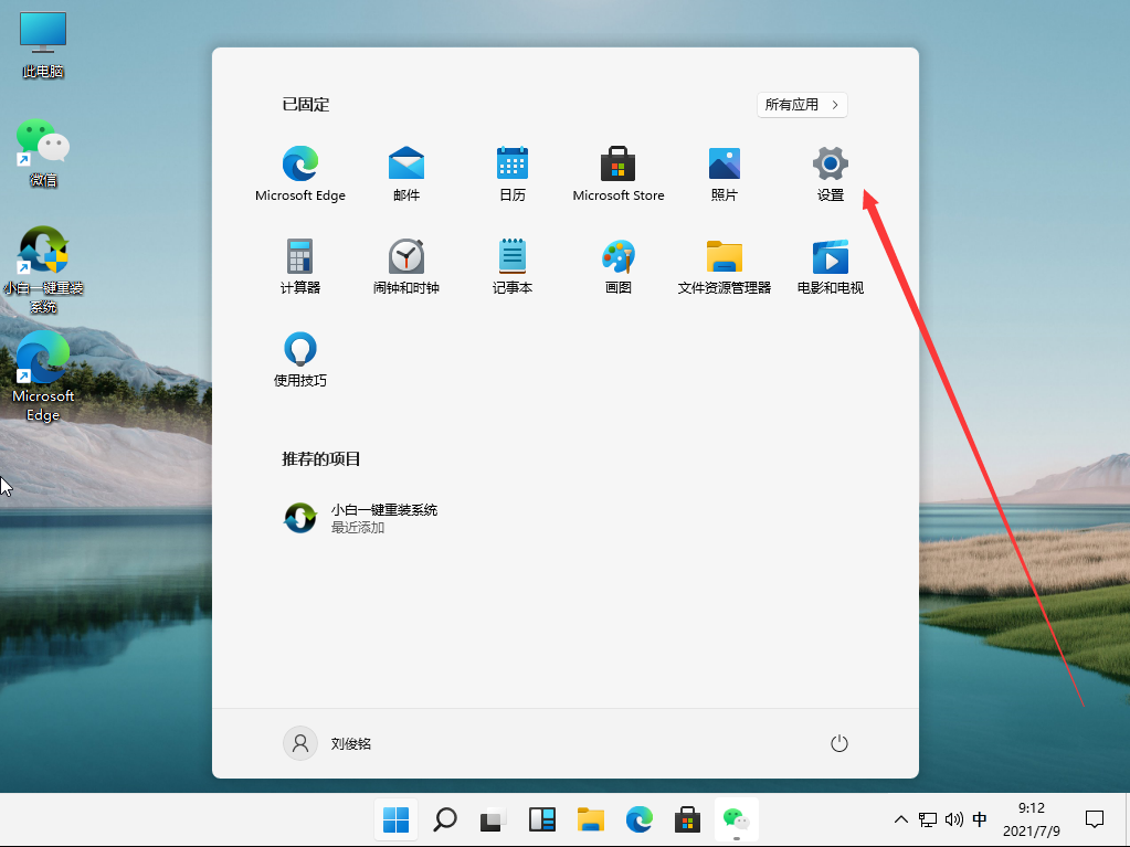 1、首先点击任务栏中间下方的开始。然后进入windows设置。