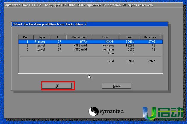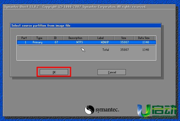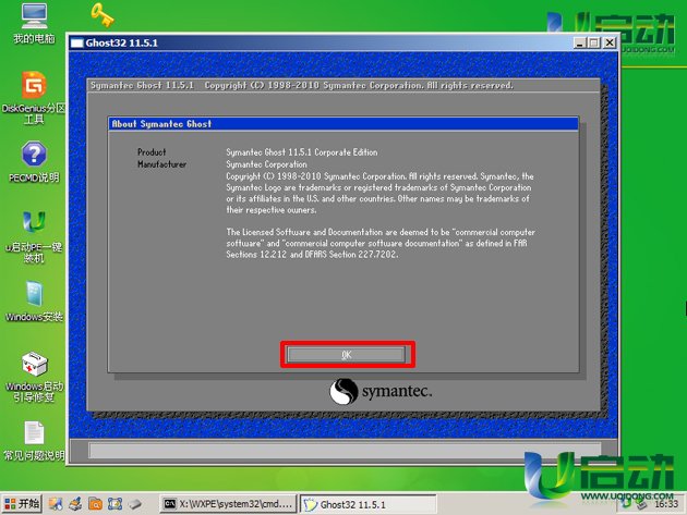 进入2003PE系统后,双击桌面上的“u启动PE一键装机”工具,勾选上方的“手动”选项,在程序自动跳转的窗口下点击“OK”按钮即可;如下图所示: