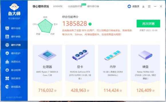 有一些朋友喜欢用新版鲁大师软件给自己的电脑进行跑分,跑出来138万想知道是什么水平,算不算是比较好的配置,今天当客网小编来给朋友们讲讲使用最新版本的鲁大师软件测出综合性能得分138万怎么样? 新版鲁大师跑分138万什么水平? 这个分数已经属于非常高了,因为现在的电脑基本上就几十万的跑分,跑了130万真的是很高了,配置肯定也很高,基本上打游戏不在话下了。 跑分138万属于次旗舰的主机。流畅玩转各种游戏是没有问题的。 其实鲁大师软件上已经说明得很清楚了,此电脑击败了全国98%的用户,可以流畅运行各种3A大作以及各种专业的设计软件。 鲁大师电脑综合性能评分通过模拟电脑计算获得的CPU速度测评分数和模拟3D游戏场景获得的游戏性能测评分数综合计算所得,这个分数能够表示电脑综合性能;不过分数只能作为大概的性能参考,并不完全反映实际使用中的性能表现,选购电脑配置还需要考虑日常使用的需要。 鲁大师的跑分用于不同机子的对比,可以一目了然地知道哪台电脑比较好。 但是如果单看分数的话,可能说明不了什么。这时候看到的是综合性能得分,想知道能不能玩某款游戏,要看显卡、内存、硬盘等有没有达到要求。 |
