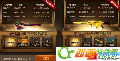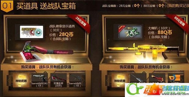 战队消费排行第一则该战队所有成员将获得:40战队币 个人消费排行第一则将获得:黄金AK(180天) 活动规则: 1、买道具送战队宝箱活动,仅限战队成员参与(新加入战队用户,第2天才能参与该活动)。 2、28元宝箱每个用户每天最多10次机会,88元宝箱每个用户每天最多5次机会。(不同宝箱,抽取的道具不同) 3、只要成功购买战队宝箱1个及以上,则再享有队长土豪特惠购物专区特权。(其中QT专属道具另需要在任意QT生化战队房间前一天内满1小时即可购买) 4、消费排行第一的个人额外获赠 黄金AK(180天) ,消费排行第一的战队,则每个战队成员获赠40战队币。活动结束后10个工作日内统一发放。 |