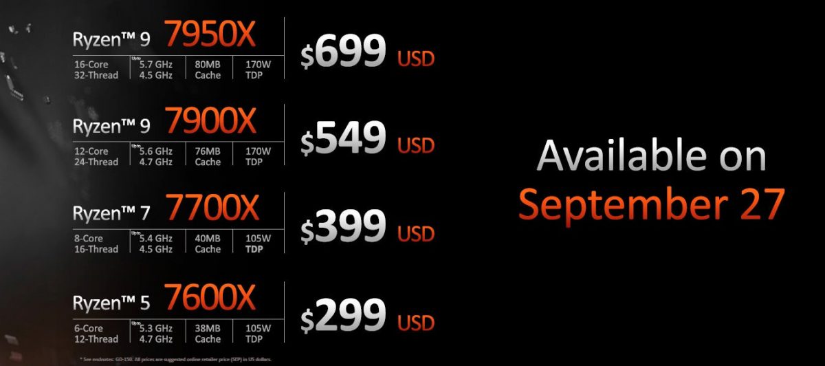AMD Ryzen 7000"Zen4"台式机系列将于 9 月 27 日发布