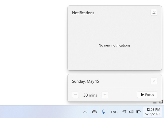 而专注是一个稍微高级一点的功能,允许用户创建计时器,从而专注于特定任务,提高工作效率。用户可以从时钟应用、设置应用或任务栏上的日历弹出窗口启动该功能。