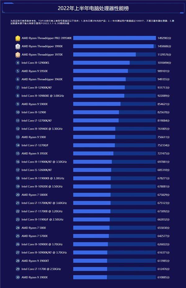 鲁大师最新跑分排行榜 鲁大师电脑跑分性能天梯图2022