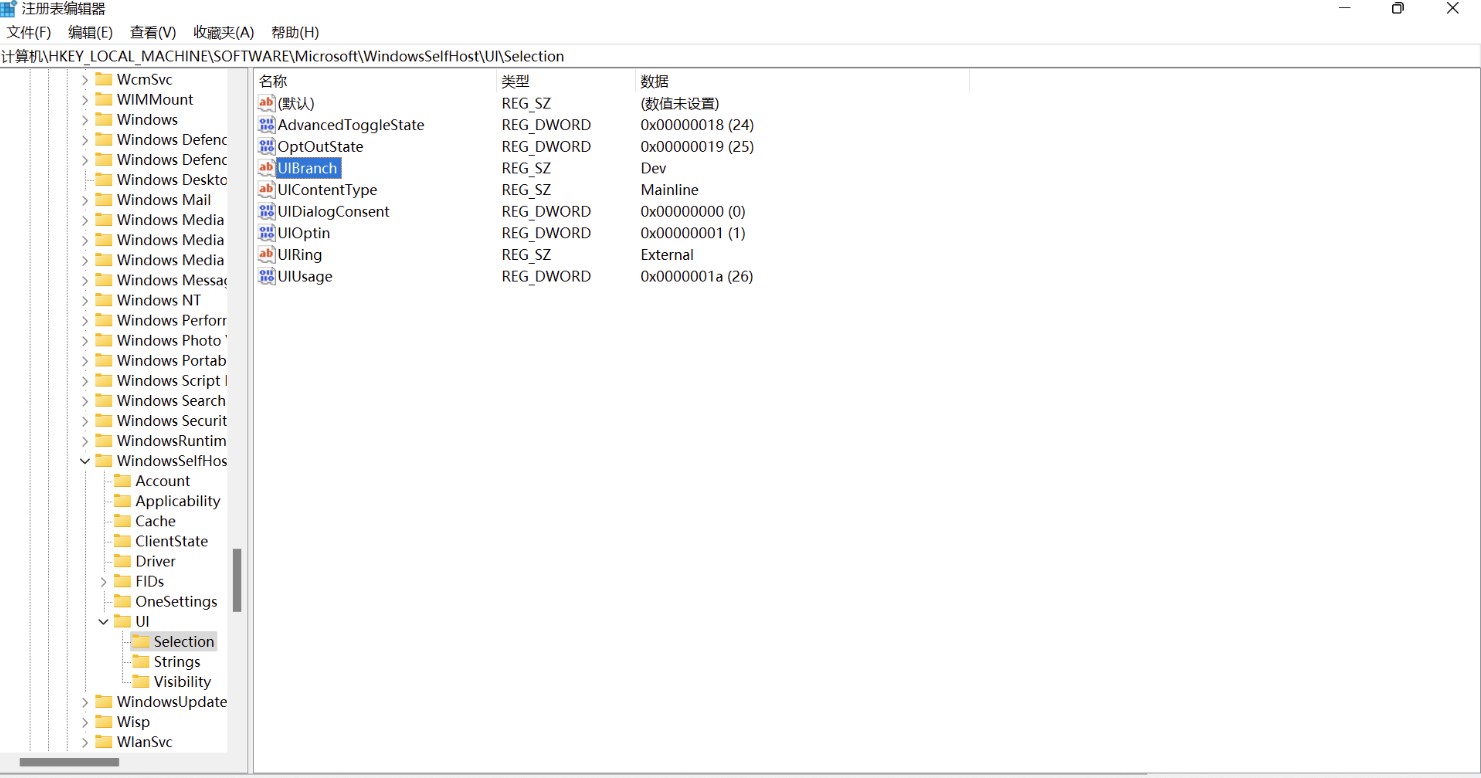 1、没有dev渠道的,定位到以下注册表修改相应的数值! 改为Dev