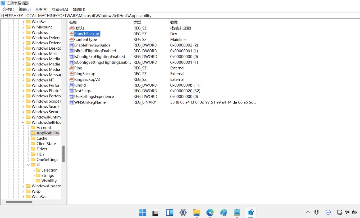 [HKEY_LOCAL_MACHINE\SOFTWARE\Microsoft\WindowsSelfHost\Applicability]