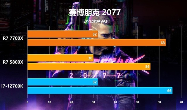 赛博朋克2077是是市面上少有对多核心支持比较好的游戏,所以核心更多的12700K会略有优势。因为对显卡要求比较高,三者的性能差距都不算大。7700X的提升大约在10%左右。