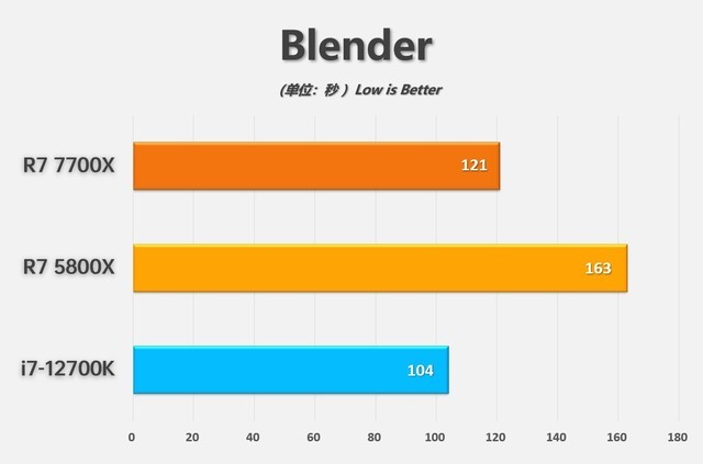 最近在学习Blender,所以准备来测试一下Blender的性能吧,7700X在Blender中的提升倒是非常明显,提升了25%左右,不过相比12700K还是略逊一筹。