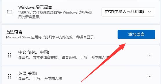 5、如果其中没有你想要的语言,点击下面“添加语言”;