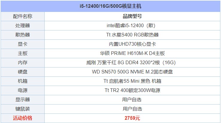 注:本套配置可以补差换成i5 12490F盒,性能提升大概3%。