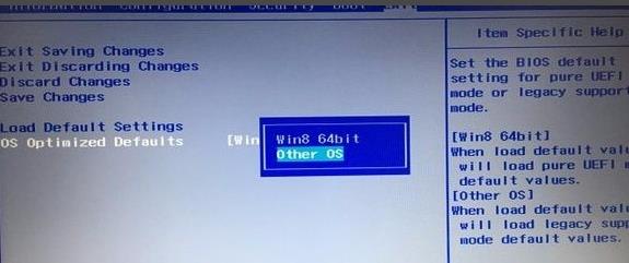转到Exti界面,先要选择 OS Optimized Defaults,系统类型win8 64bit,表示UEFI,other OS或者Disabled表示Legacy,如果要改win7,这边选择Other OS回车