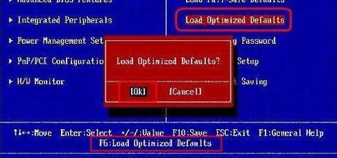 2、进入BIOS界面,底部显示 F6:Load Optimized Defaults,按F6再按回车即可,快捷键一般是F6、F9,