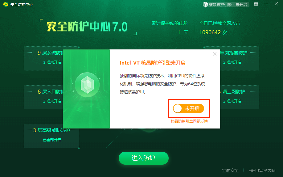 怎么判断自己的电脑VT是否开启?有的小伙伴已经给电脑开启vt,但运行模拟器还是会提示未开启,这是怎么回事呢?我们可以通过第三方软件来检测是否真的开启vt,如果未开启也有可能是因bios故障了,下面,小编带来了电脑VT已开启模拟器仍提示未开启的解决方法,一起来看看。 解决方法 第一种方法,通过第三方软件,判断VT是否真的开启,点此下载CPU-V诊断程序进行诊断,如果出现1个红色的“X”,你的电脑支持VT,但你还未开启! ![]() 若VT诊断工具也表示未开启,请排查如下4种情况: 情况1,只开了VT-D,这个不是模拟器所需要的VT,需要同时开启VT-X,模拟器运行所需VT的关键词为:“Virtual”、“Virtualization”、“VT-X”、“SVM”、“虚拟化技术“; 情况2,BIOS功能异常。建议再次进入BIOS页面,先关闭VT,随后再次进入BIOS页面,重新开启VT; 情况3,与360安全卫士核晶防护冲突了。打开360安全卫士→左下角点 防护中心→打开 360安全防护中心→右上角第一个按钮→关闭核晶防护; ![]() ![]() ![]() 情况4,与Avast Free Antivirus硬件辅助虚拟冲突,打开Avast Free Antivirus→右上角“三”菜单→打开设置→故障排除→关闭“启用硬件虚拟辅助”。 ![]() ![]() ![]() 希望本文能助大家顺利开启vt功能,获取更多实用电脑教程,请继续关注本站。 |