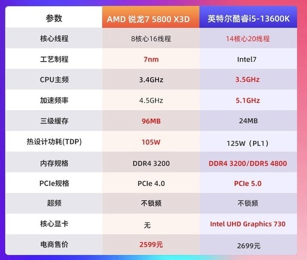 锐龙7 5800X3D和酷睿i5-13600K对比哪个好?