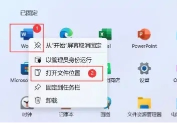 右击word图标,点击打开文件位置。