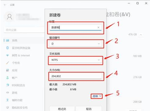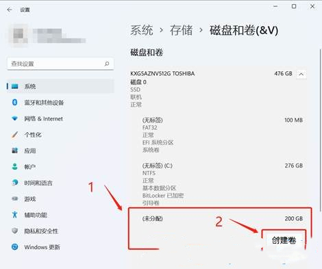 Win11系统512g固态硬盘怎么分区?有小伙伴发现在购置了新电脑之后,发现进入电脑只有512g的C盘,只有一个盘管理的话不是很方便,于是就想手动操作进行分区,那么Win11系统512g固态硬盘如何分区才最合理呢?下面和大家带来具体教程。 方法一、 从C盘中释放200GB的容量,从而新建容量大小为200GB,盘符为D的过程。 1、首先,按“Win 键”,或点击任务栏上的开始图标,然后点击已固定应用下的设置; 2、设置窗口,左侧选择的是系统,右侧点击存储(存储空间、驱动器、配置规则); 3、当前路径为:系统>存储,点击高级存储设置(备份选项、存储空间、其他磁盘和卷)下的磁盘和卷; 4、磁盘和卷下,先点击展开磁盘按键,将当前磁盘的信息展示出来,然后选择C盘,点击属性; 5、C盘属性中,点击更改大小; 6、更改大小对话框中,新建方框,输入压缩后的C盘容量大小,而不是输入要建立的新分区大小; 比如说,我要新建一个D盘,D盘大小为200GB,200GB*1024=204800MB,当前C盘为487612MB,我需要输入:282812=487612-204800,之后点击确定。 7、然后点击窗口左侧上方的返回键; 8、这个时候磁盘和卷中,会出现一个未分配空间,选择此空间,点击“创建卷”; 9、新建卷对话框中,标签可以任意输入,其它选择默认; a) 标签:盘符的名称,这里输入新建卷。 b) 驱动器号:该盘符的盘符号,比如:选择D就是D盘,选择E就是E盘。 c) 文件系统选择:选择NTFS,选择其他可能会导致使用异常。 d) 大小:方框中输入新建盘符的大小。 注:由于我们压缩就是200G大小,所以默认选择最大值即可,最后点击高级,打开高级选项栏。 10、高级选项栏中,选择默认设置,点击格式化; 11、最后,查看是分区否新建成功。系统设置磁盘和卷,还有计算机中,已经可以看到刚新建的分区磁盘D了。 方法二、 1、桌面右键点击“此电脑”,在打开的菜单项中,选择“管理”; 2、计算机管理窗口,点击左侧存储下的“磁盘管理”; 3、选择要分区的磁盘,并点击右键; 4、在打开的菜单项中,选择“压缩卷”; 5、此时能够得出压缩空间的数值,输入需要的压缩空间,点击压缩; 6、压缩完成后,会有一个未分配的分区,点击右键,在打开的菜单项中,选择新建简单卷; 7、新建简单卷向导,点击下一步继续; 8、新建的简单卷,磁盘格式要选择为“NTFS”; 9、最后,进入到此电脑磁盘管理器,就可以看到刚才新建的分区了。 |