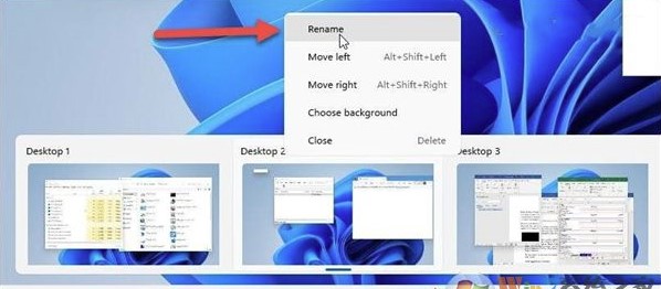 重命名虚拟桌面:默认情况下,Windows 为每个桌面提供一个通用名称。但是您可以为每个名称创建特定的名称。将鼠标悬停在任务视图按钮上,右键单击桌面,然后选择重命名。