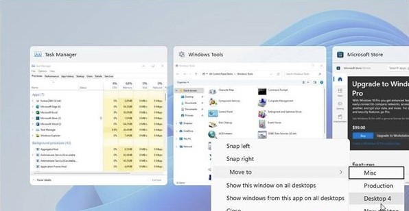 有时您可能希望将应用程序的窗口从一个桌面移动到另一个桌面。为此,请单击“任务视图”按钮并将鼠标悬停在您要移动的窗口所在的桌面上。然后右键单击该窗口并单击移至,然后选择桌面。